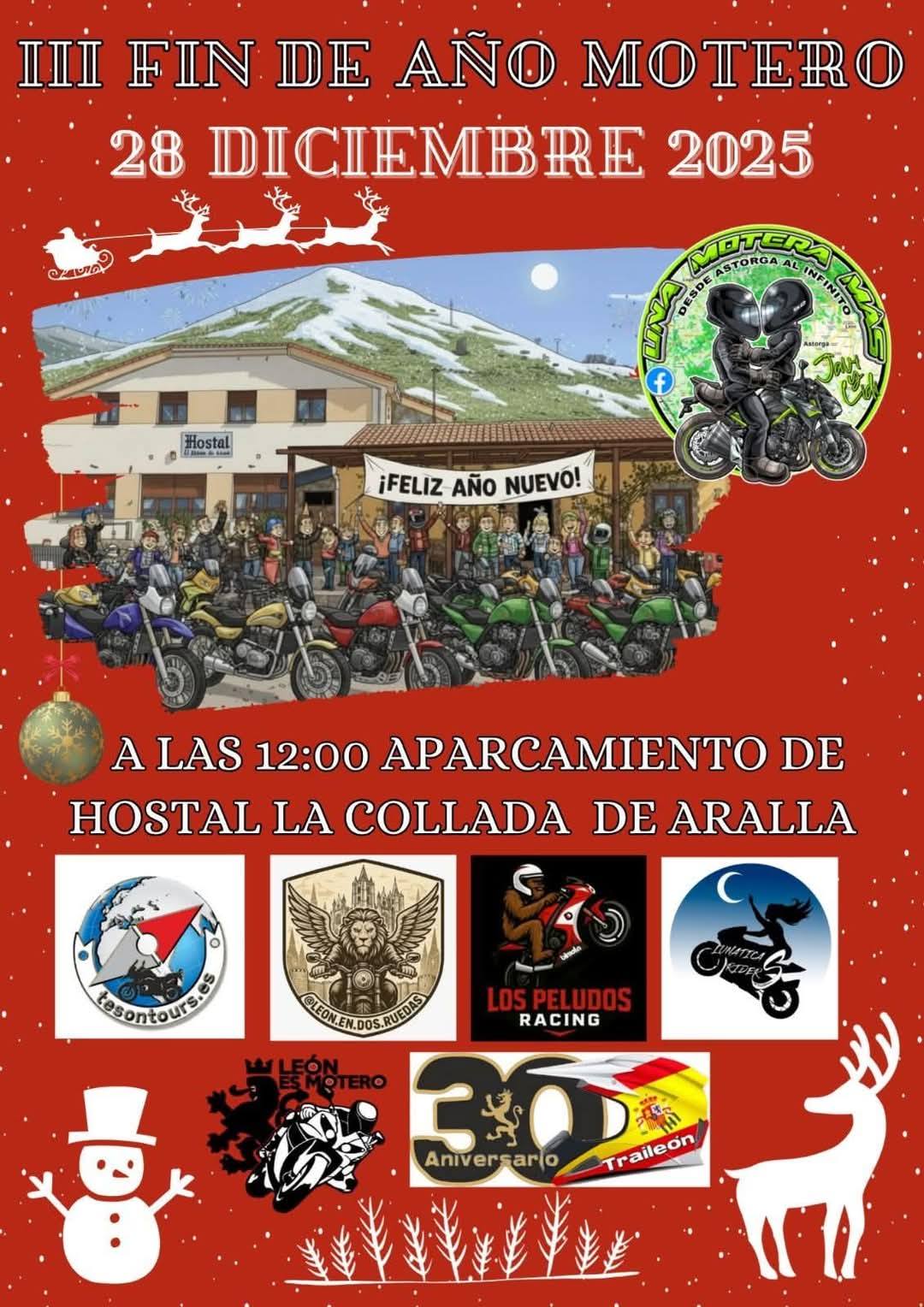 III Fin de Año Motero + Añadir Google Calendar + exportación iCal / Outlook El evento está terminado. Fecha 28 Dic 2025 ¡Caducado! Hora Todo el día Rótulos Evento Localización Puerto de Aralla, León Categoría Agenda Motera Evento Compartir este evento