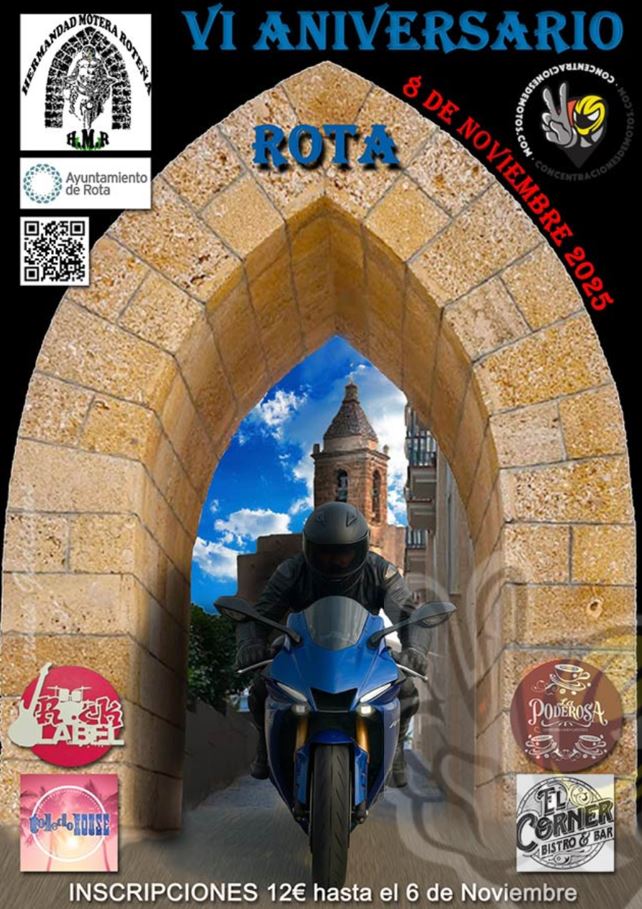 VI Aniversario Hermandad Motera Roteña + Añadir Google Calendar + exportación iCal / Outlook El evento está terminado. Fecha 08 Nov 2025 ¡Caducado! Hora Todo el día Coste 12,00 € Rótulos Evento Localización Rota Cádiz Categoría Agenda Motera Evento Compartir este evento
