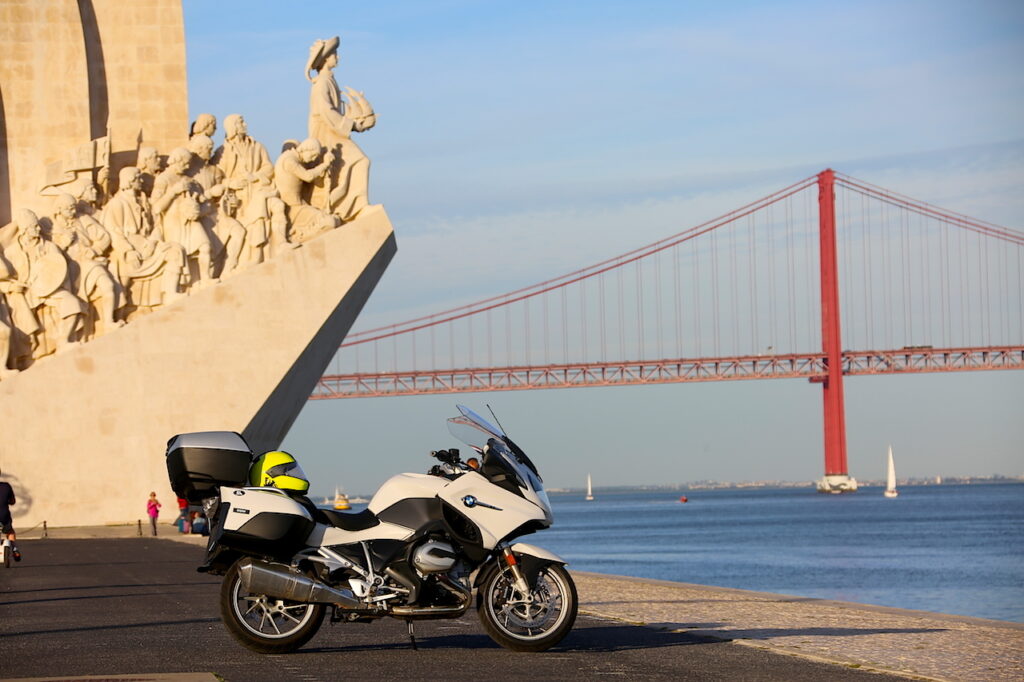 Dentro de Portugal, las carreteras que viajan junto al río son sinuosas y en un continuo sube y baja zigzagueante por las colinas que los bordean. Mientras la A-23 es la autopista rápida, la N-118 y la N-3 son mucho más turísticas e interesantes, enlazando pueblos saturados de historia y monumentos. Cambia el Tajo a rumbo sur y se hace más perezoso y ancho para acabar por abrirse en el estuario más grande de la península ibérica, catalogado en su zona norte como reserva natural y conocido como el Mar de la Paja. El largo y armonioso puente de Vasco de Gama lo cruza en su centro para dar acceso a la capital portuguesa, Lisboa, que reclamará la atención del viajero durante tantos días como desee, pues siempre encontrará alicientes culturales y gastronómicos, por solo citar algunos, de la preciosa capital de Portugal. El puente 25 de Abril, de paso muy recomendable en moto, es la entrada o salida de la ciudad hacia el sur, y los monumentos de la Torre de Belén, el Monumento a los Descubridores y el monasterio de los Jerónimos forman un conjunto monumental en el lugar donde el Tajo vierte sus aguas en el Atlántico.