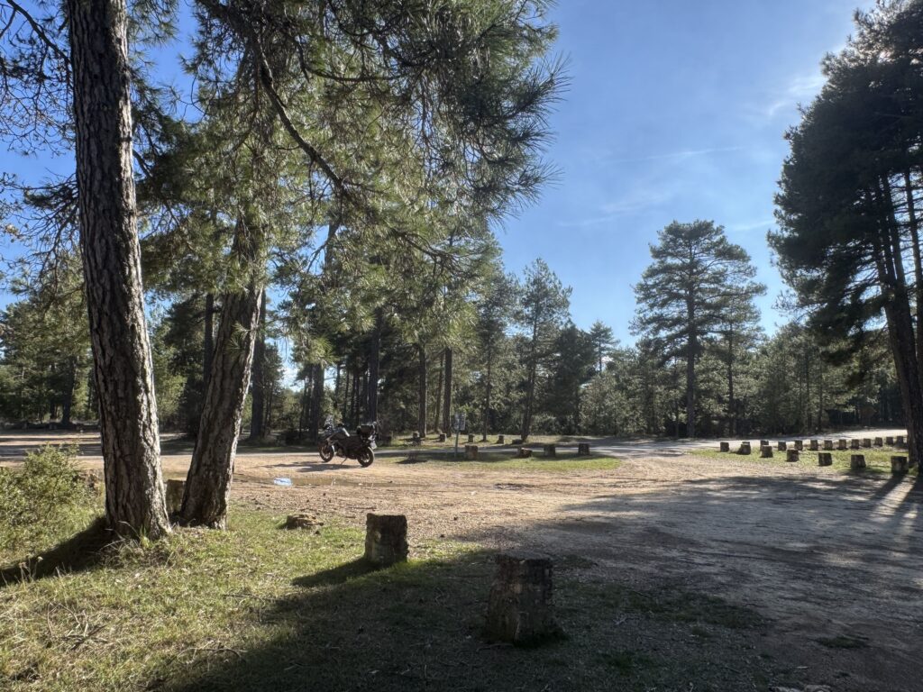 ATENCIÓN. Toda esta carretera está asfaltada, pero tiene socavones que hay que evitar si no quieres romper tus ruedas. Se recomienda una velocidad muy limitada (regulada a 30 km/h) y es mejor conducir de pie sobre los estribos para ver más lejos y evitar caer en alguno de estos traicioneros agujeros. Hay varios atractivos en este bosque, como el Pino Abuelo o el mirador de San Nicolás, y muchos más donde parar y recrearte con la soledad de estos parajes. En toda esta zona hay múltiples caminos, generalmente bien mantenidos, por los que puedes rodar con tu moto trail. En estos caminos hay que estar siempre alerta a la posible circulación de camiones madereros o también a encontrarlos trabajando, recogiendo los troncos ya cortados para su traslado y ocupando toda la pista.